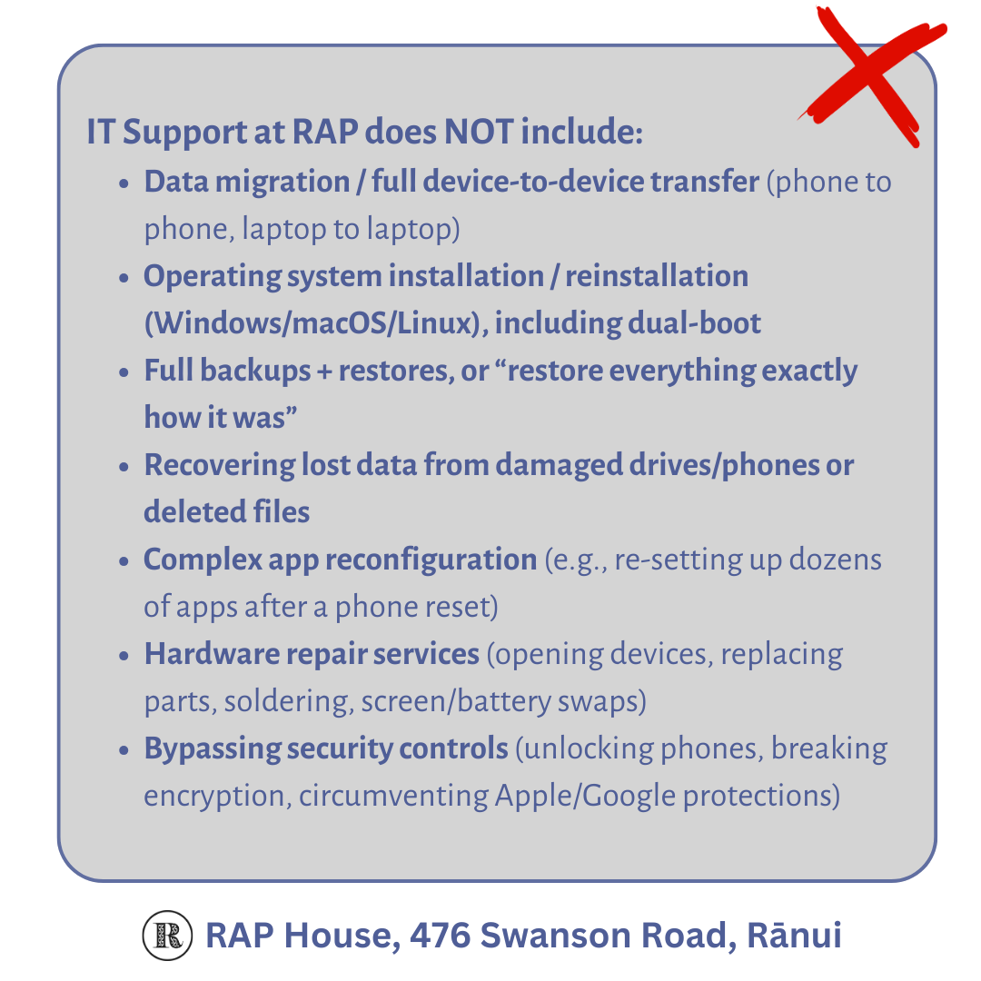 Take a look below at what the IT Support at RAP includes, and does NOT include.